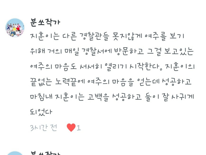 제가요..팬플을 처음 접하고 본 첫번째 팬픽이 우리 분쏘작가 글이에요..우리 분쏘작가 작품을 보고 제가 글을 쓰기 시작했죠 호홓