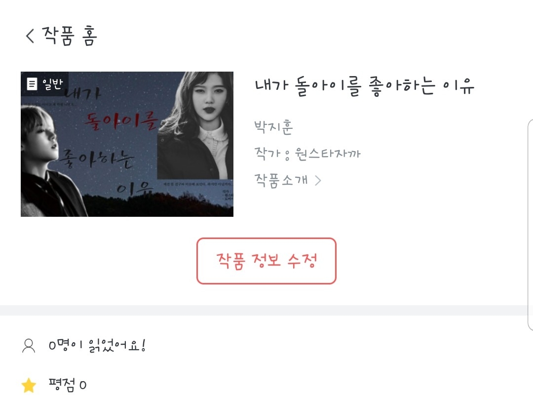 새로 바뀐 소설의 제목은!!!! 바로 "내가 돌아이를 좋아하는 이유" 입니다!! 정말 쓰다보면 되겠지..라는 마인드로 쓰고 있는 "싸일연"(싸가지일진 박지훈과 연애해요)과는 달리 탄탄하게 스토리를 미리 짜놓았습니다!!