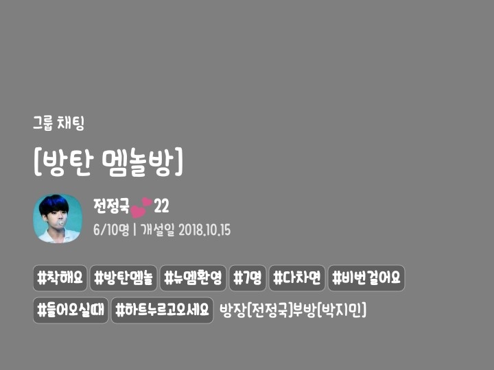 이방 ! 진짜ㅜㅠㅠㅠ 완전 대유잼입니다ㅠㅠㅠ 다들 넘 착하구ㅠㅠㅠ 들어오시먄 아껴주는? 시스템이에요!