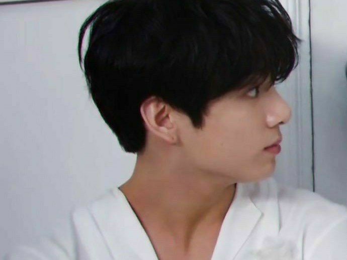 정국은 여주쪽으로 몸을 기울며, 여주에게 속삭인다.