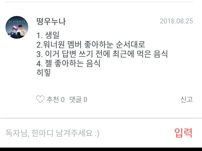 워너원 멤버....음....다니엘 성운 관린 우진/여기까지만 밝힐게요 ㅎ