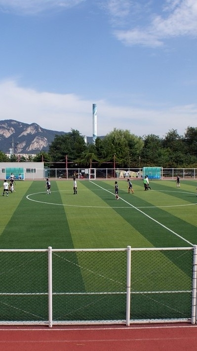 학교가 끝난후 집에가서 할세 띡히없는여준 운동장에서 축구를하는 남자얘들을 구경한다.