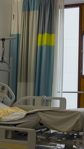 조용한 병실 안, 붉게 물든 노을 아래
