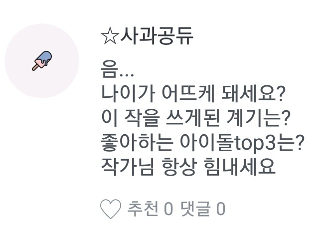 마지막으로 작가님 항상 힘내세요 라고 하셨는데 네!! 항상 힘낼테니 제글을 보시는 독자분들도 힘내세요