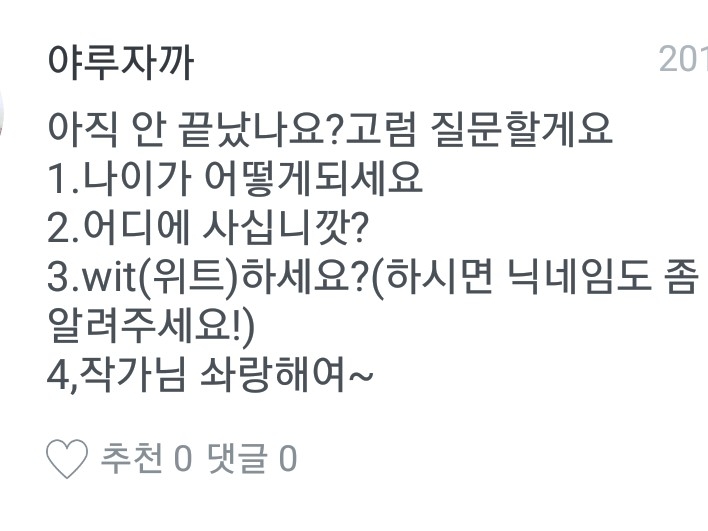 근데 위트에서 쓰는글은 제가 친해진 분이 부탁해서 만들고 있으니까 위트하시는 분들은 제 글 한번만 읽어주세요