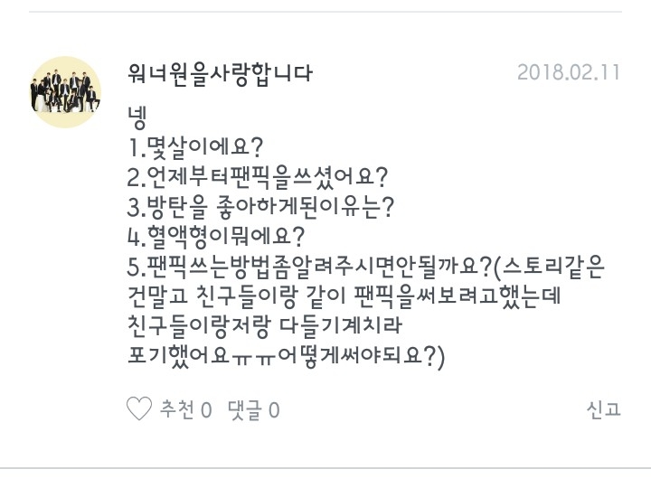 '워너원을사랑합니다' 님이 주신 5개의 질문-!