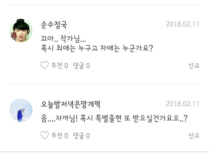 '오늘밤저녁은망개떡' 님과 '순수정국' 님이 주신 2개의 질문-