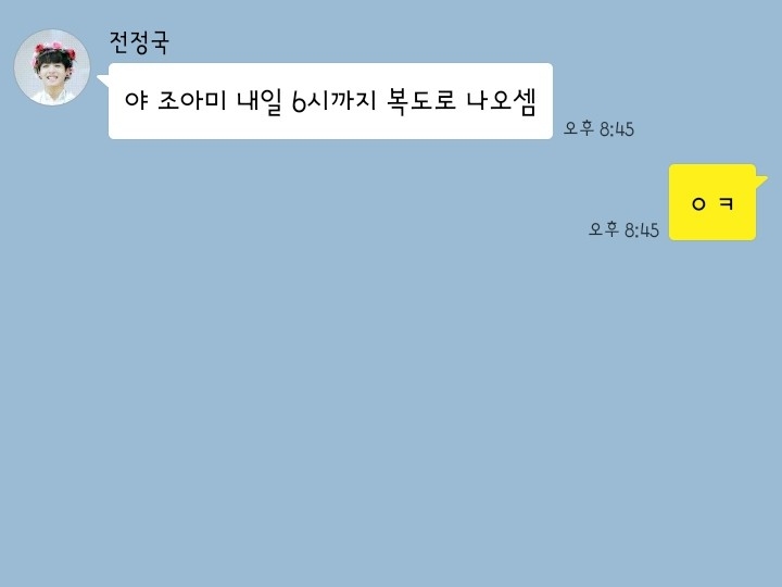 {야 조아미 내일 6시까지 복도로 나오셈}
