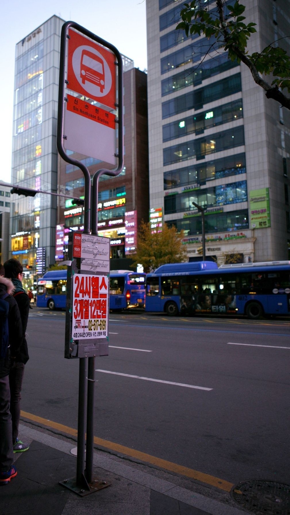 (몇 분 후 나는 버스 정류장에 도착해 버스를 기다리고 있었다.)