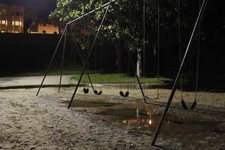 밤이 되자, 나는 운동장으로 나갔다.