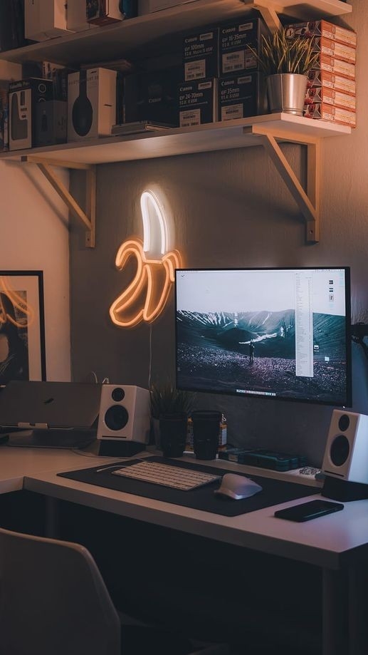 _모니터 앞에 있는 의자에 앉아서 폰을 켠다.