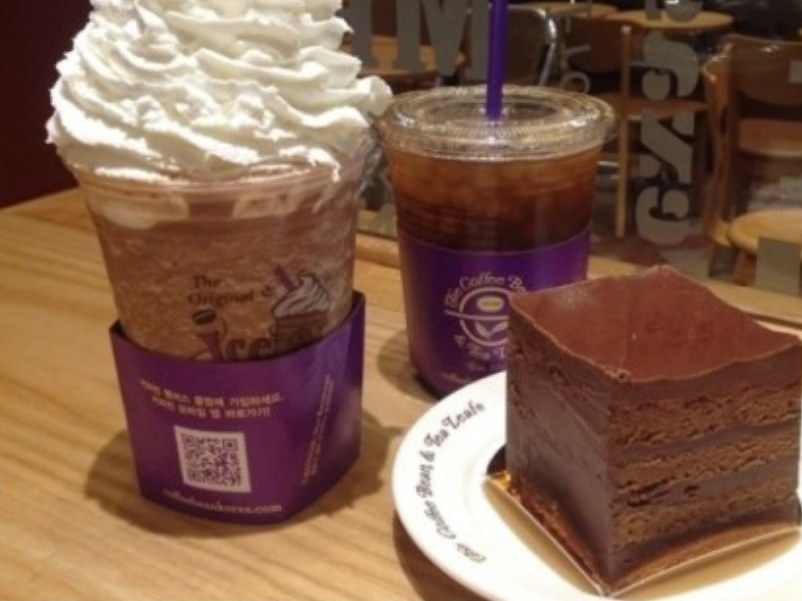 "초코 케이크랑 카페라떼..그리고 카라멜 카페모카에 톨이랑 샷 추가에 휘핑 많이 올려주세요"