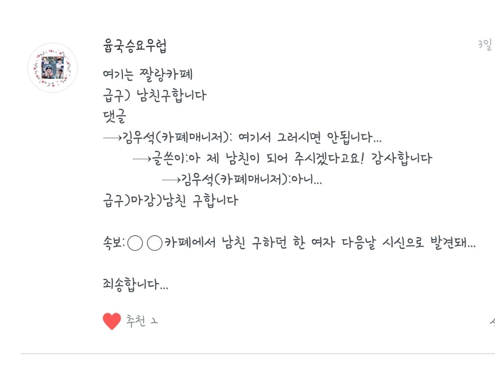 윱국승요우럽님! 진짜 빵터졌어요❤❤ 완죤 댑악🖒