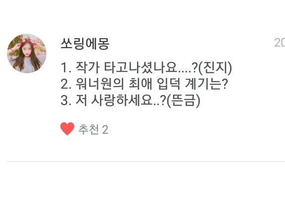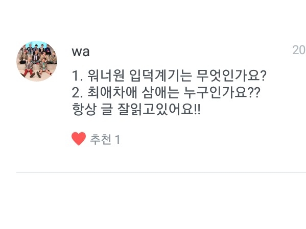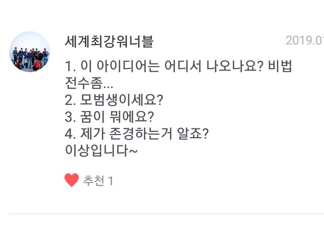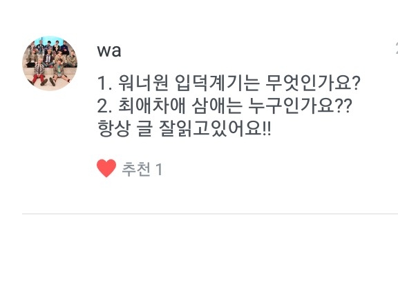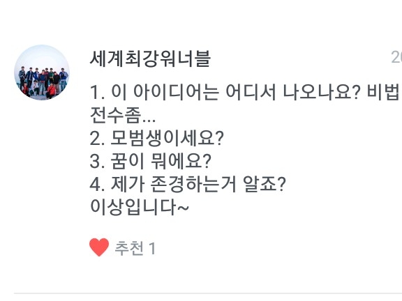 그다음! 세계최강워너블님 질문!