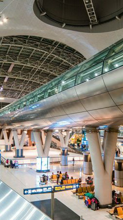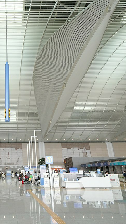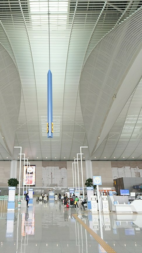 나는 비행기를 타러 가기 위해 통로로 나섰다.