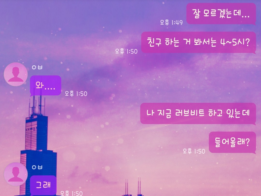 그렇게 음식을 시키고 게임을 하고 있는데 톡이 울렸다.