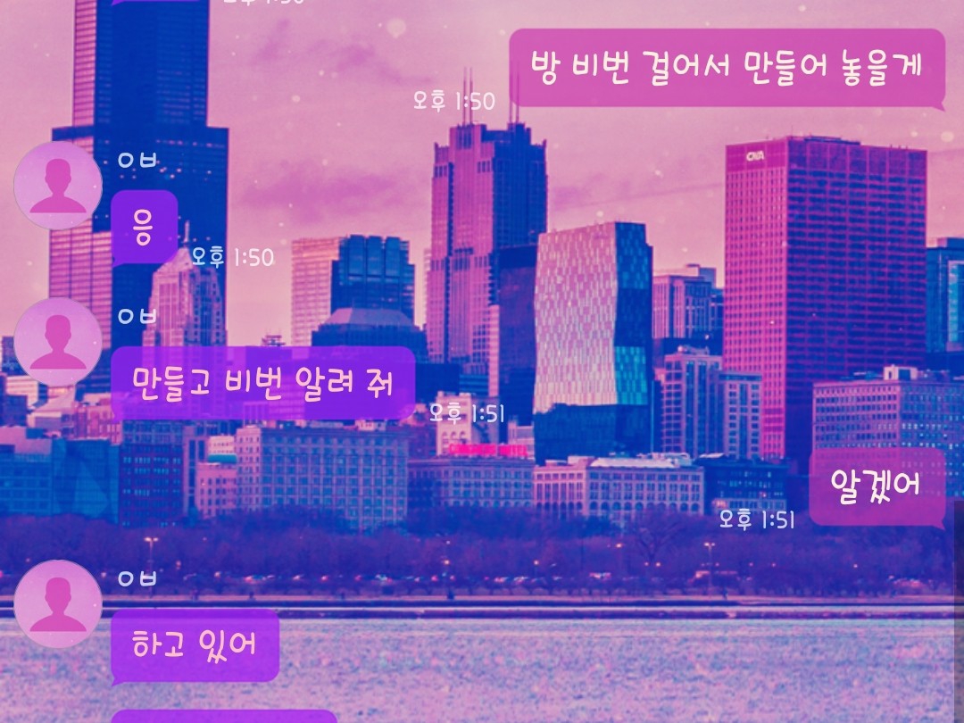그렇게 난 방을 만들고 기다리다 비번을 안 알려줬다는 걸 알고 급히 톡으로 알려줬고 들어왔다.