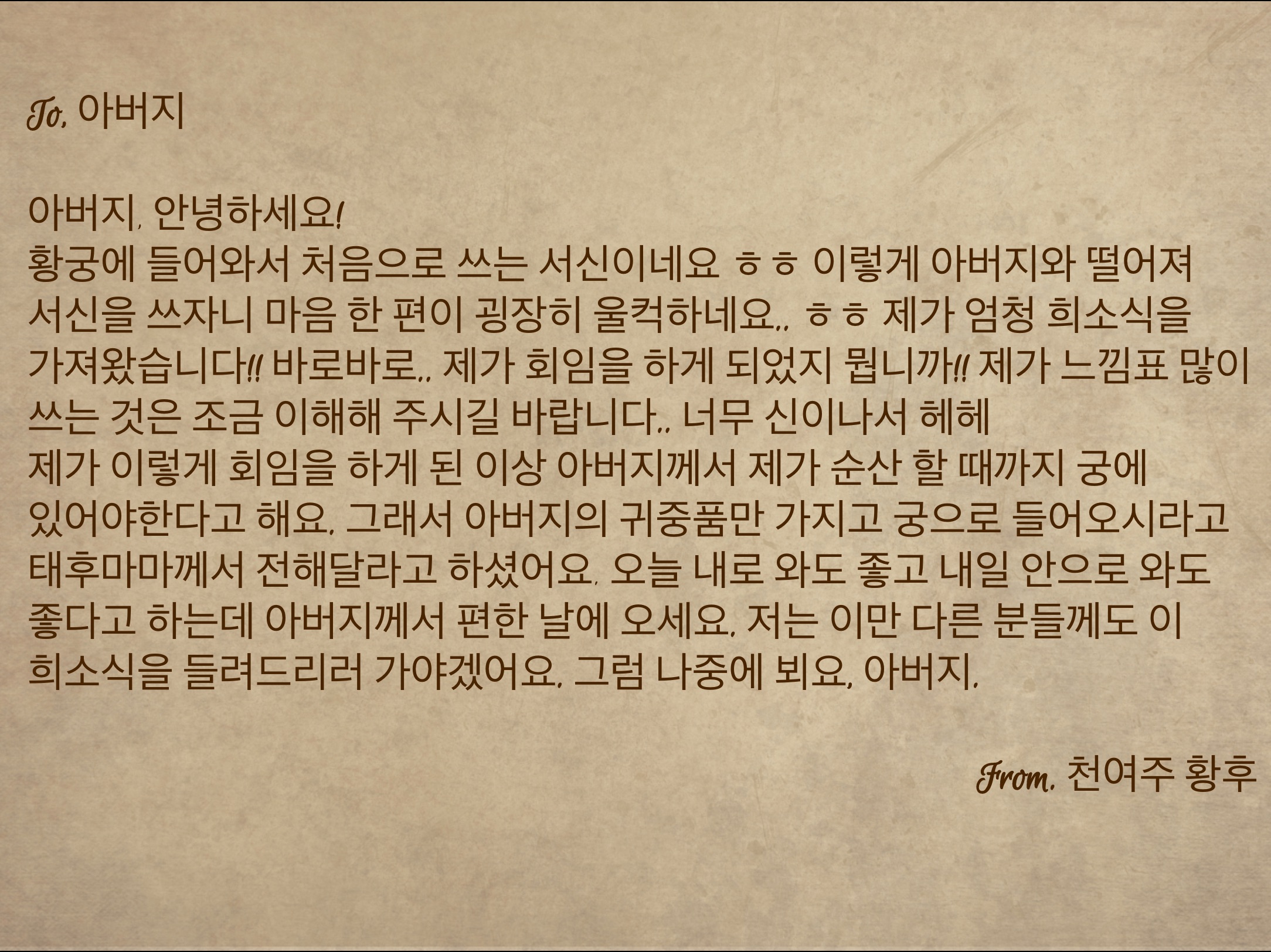 그것이 이니오라 황후전하께서 서신을 보내오셨습니다!