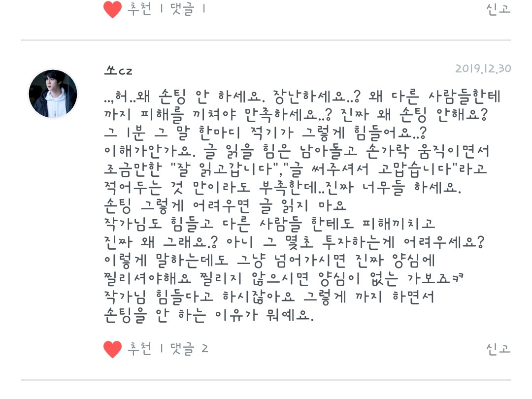 제가 눈팅러 분들께 매번 1000자의 댓글을 요구합니까..?