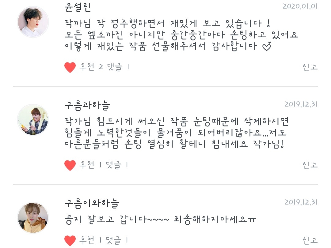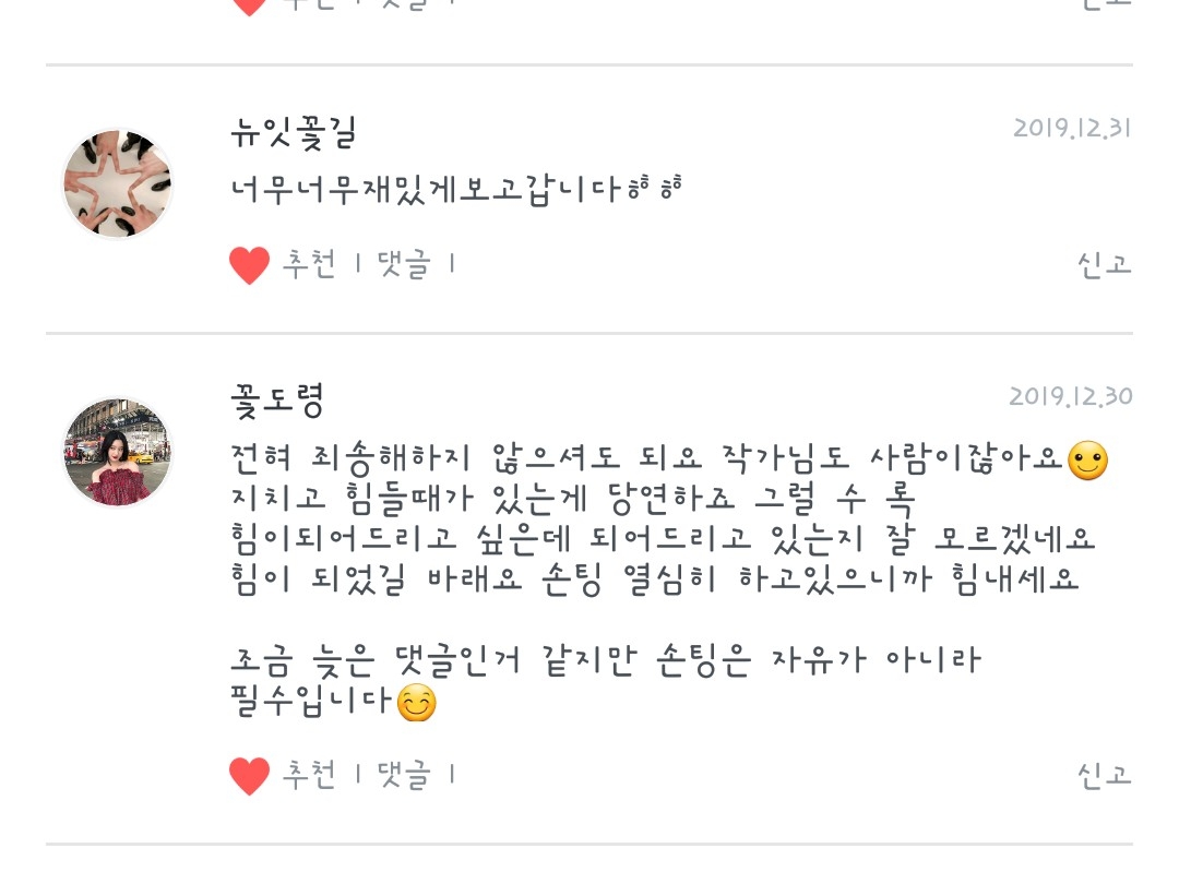 저는 정말 댓글의 힘으로 여기까지 올라왔어요....