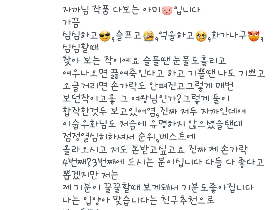 저 성의글 쓴거 다 읽었고요 닉넴도 다 기억합니다! 잊지 않을게요
