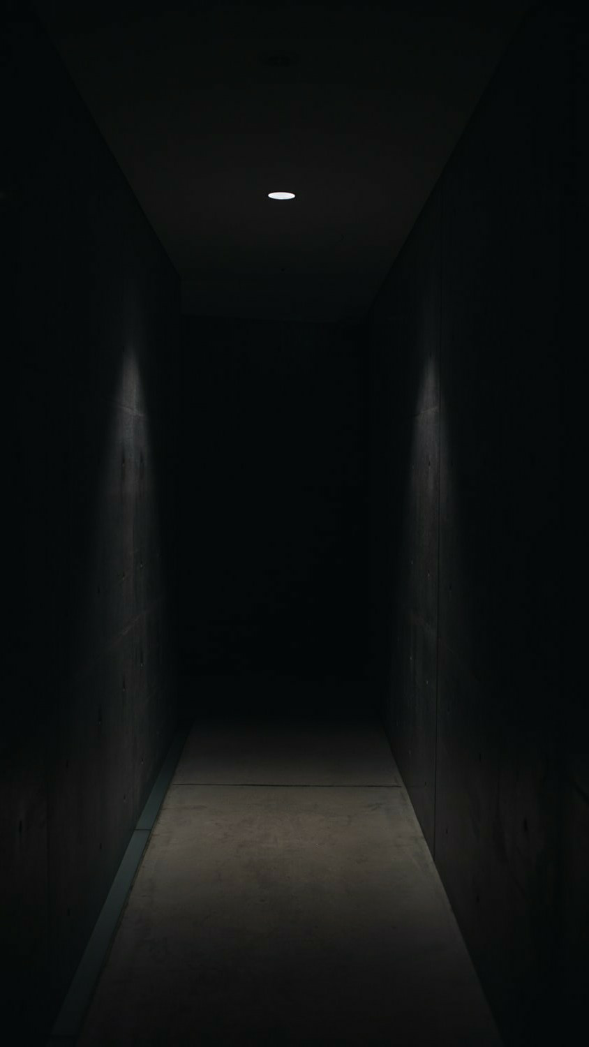 좁은 복도를 따라 걸어가면 뒤에서 문이 닫힙니다.