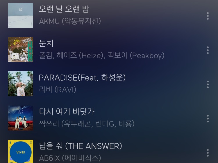 정말 제가 좋아하는 곡들인데ㅠㅠ 한 번 씩 들어 봐 주셨으면 좋겠어요! 싹스리 차트 1위 인정할 만큼 좋습니다!! 파라다이스는 셍운 목소리가 여름을 날려버릴 만큼 청량합니다...((이 노래 거의 다 아실 거에요