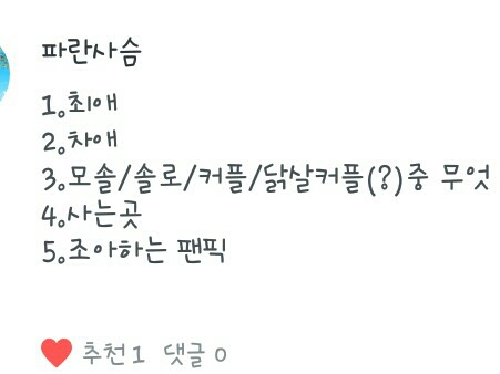 우정일까? 정구기!!에?직업 학생..좋아하는건 닭꼬치 싫어하는건 육계장 음..없소