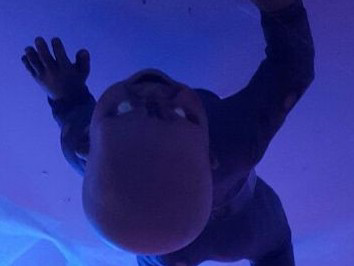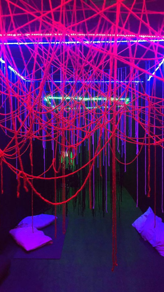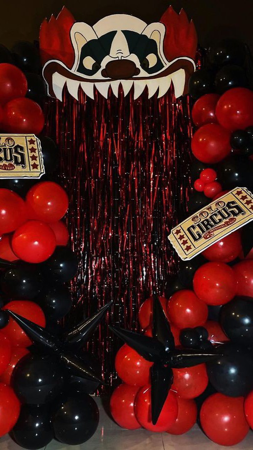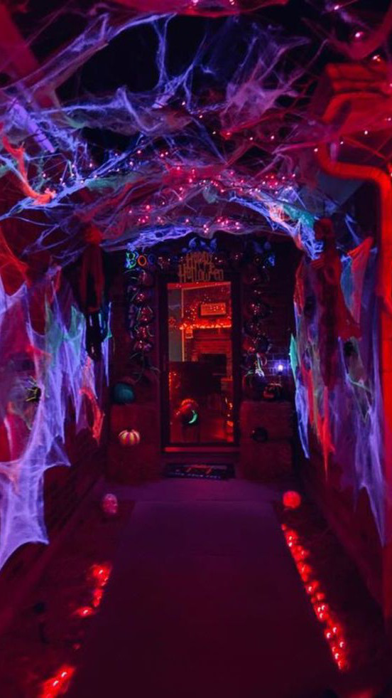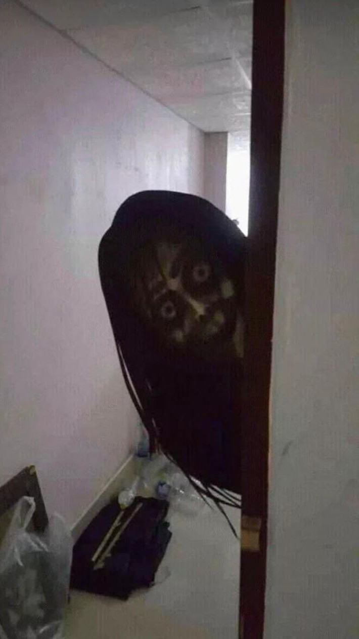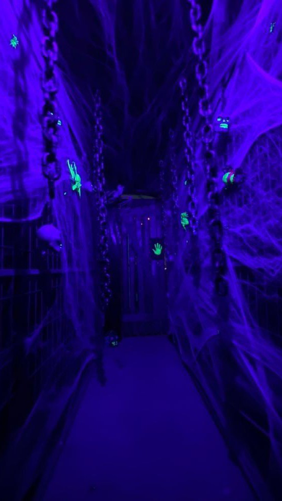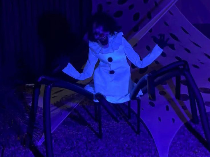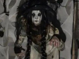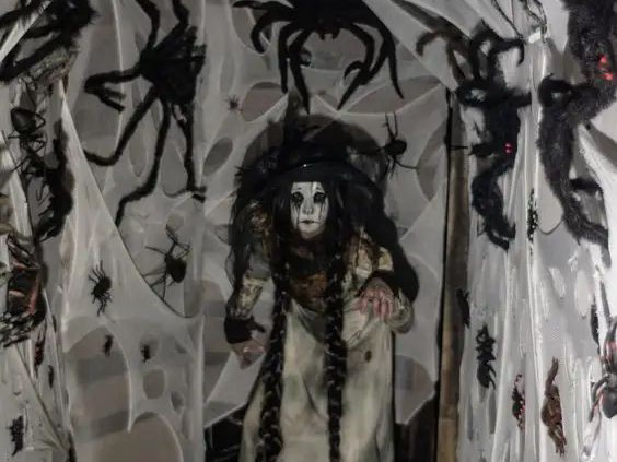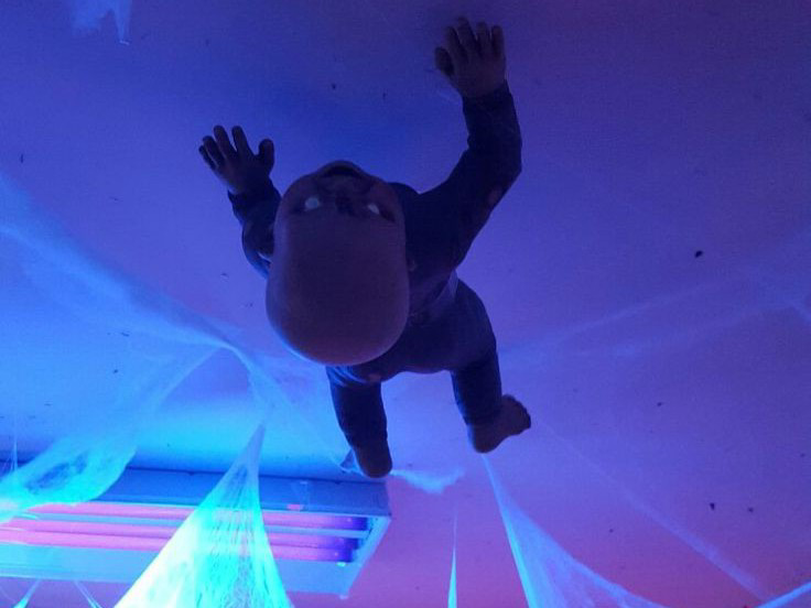 거미줄을 따라 시선을 옮기자 천장 위로 아기 귀신 모형이 기괴하게 매달려 웃고 있었다.