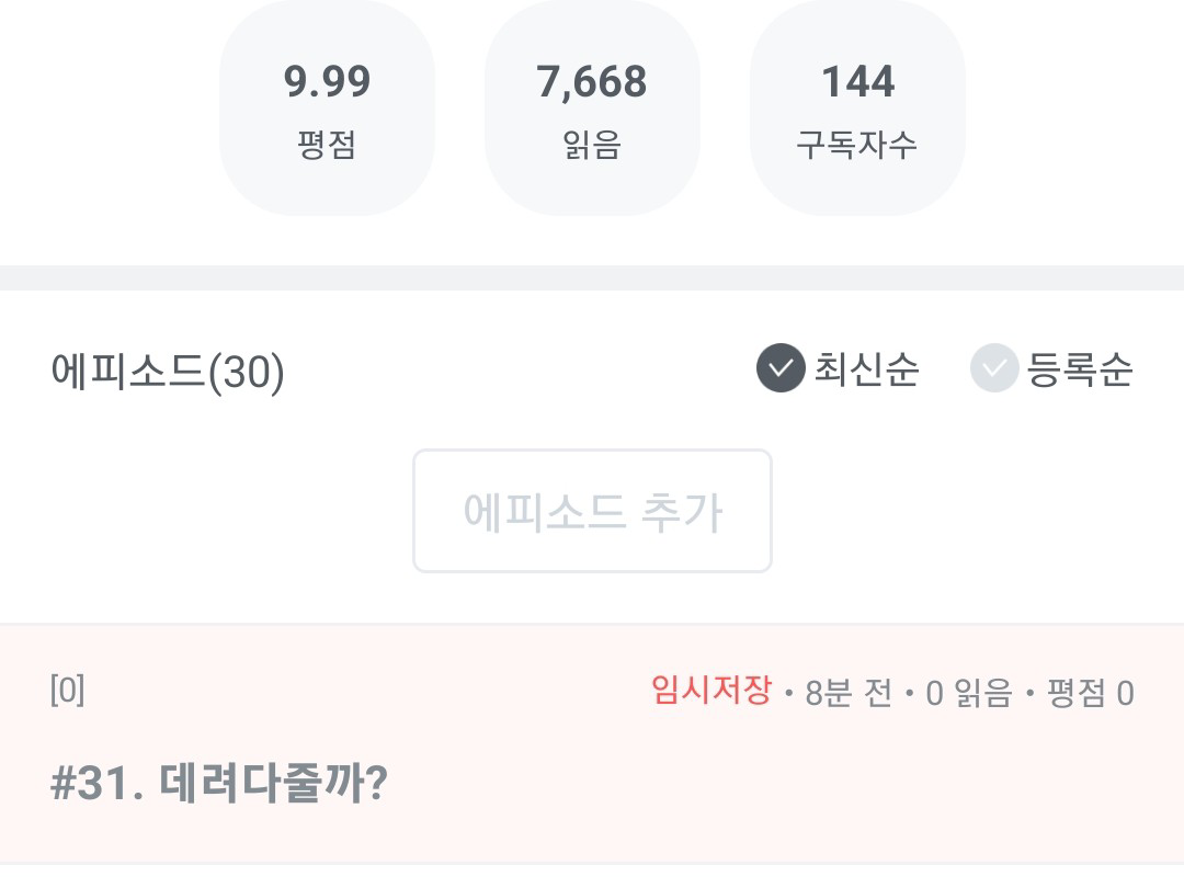 이 화면은 31화에 올라갈 글이었는데요