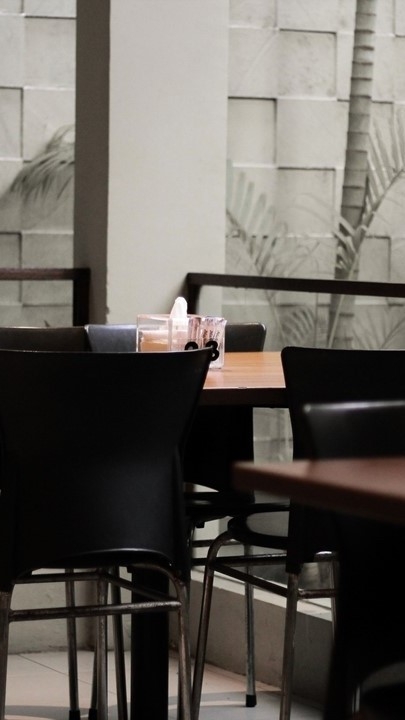 아무도 없는 카페안 햇빛이 드는 창가쪽에 앉아있는 한 남성.