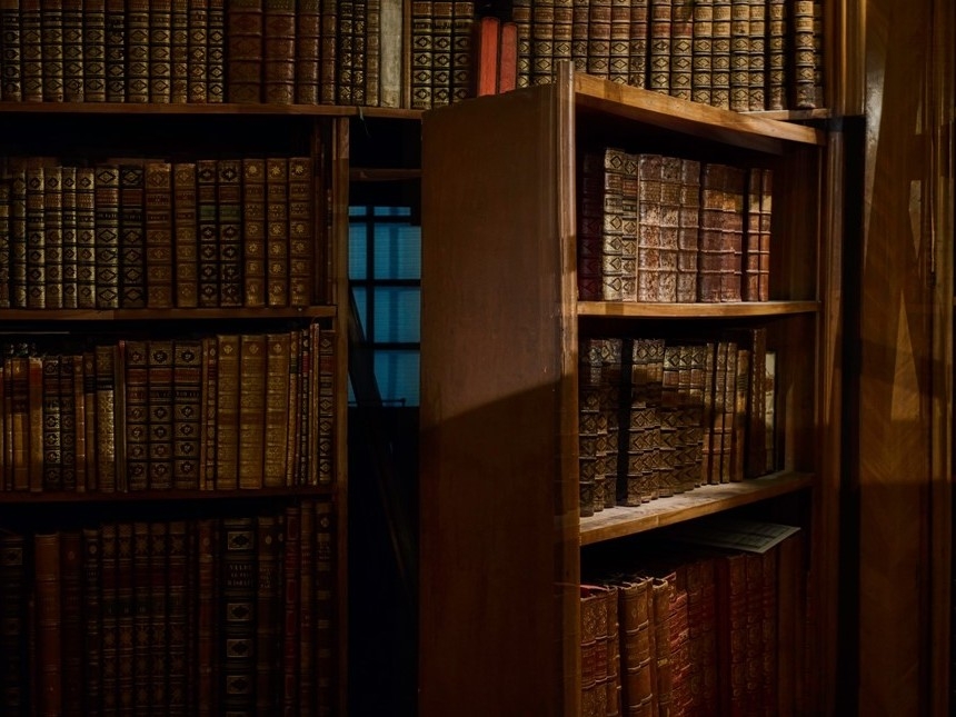 천천히 서재에 다가가 책 한권을 잡아끈다.
