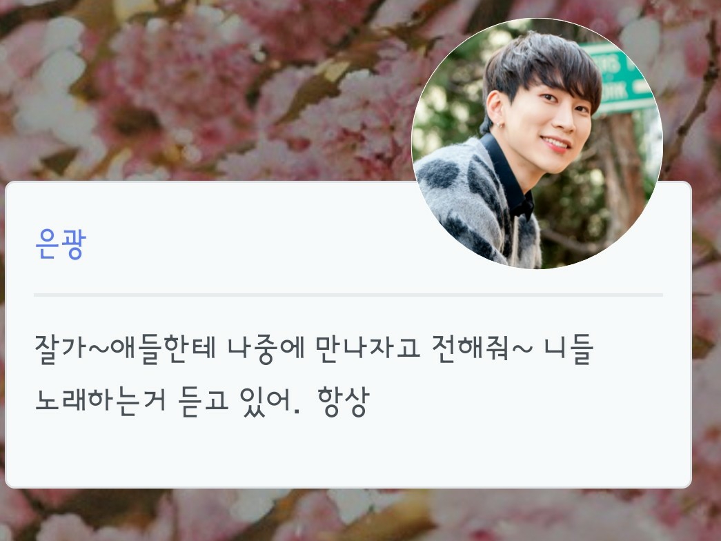 나 가봐야해..잘가~ 항상 보고있을께^^
