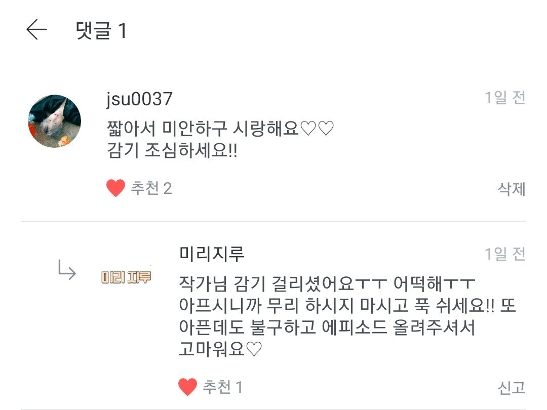 진짜..이 댓들 보니 감기기운이 싸구가는 것 같아요..ㅜㅠㅠ