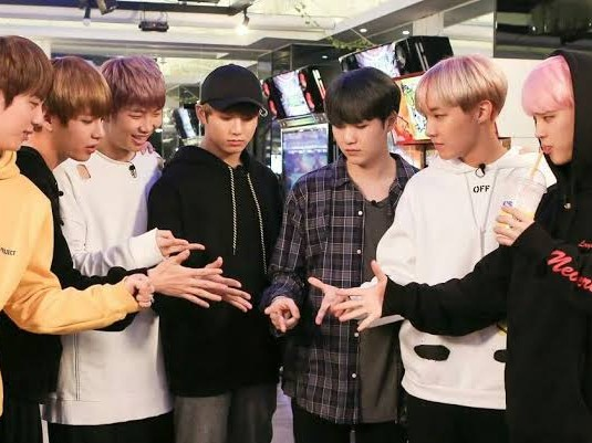 boys did rock paper sizer "jhope-jimin-jk, yoongi-Jin,RM-tae."girls also did and you came with Aeri, jina-kiara, minje-jihye, Eunji is alone