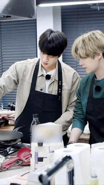 you freshup and went to kitchen where Jin and yoongi cooking