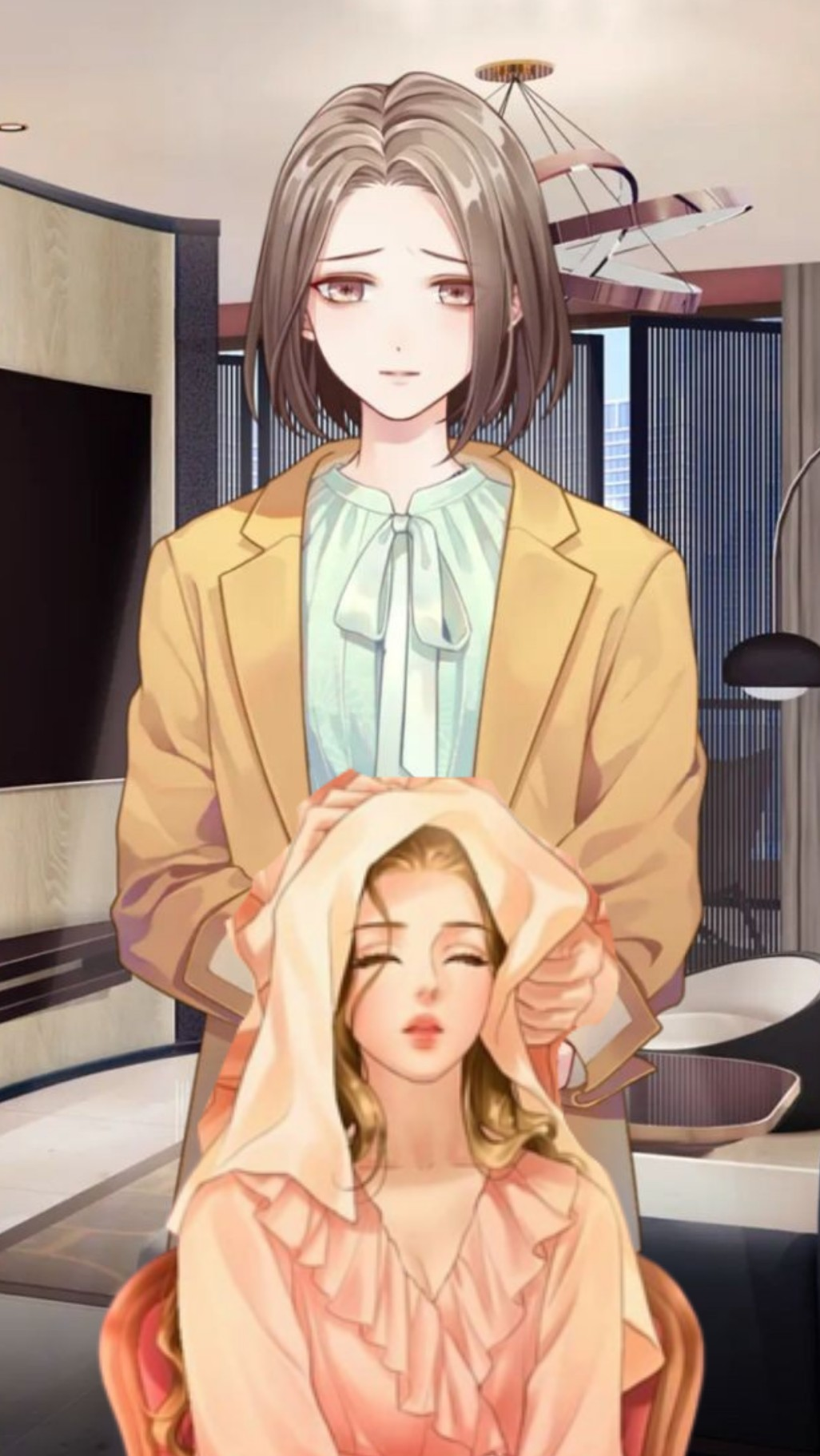 you sat on chair and jihye with towel drying your hair