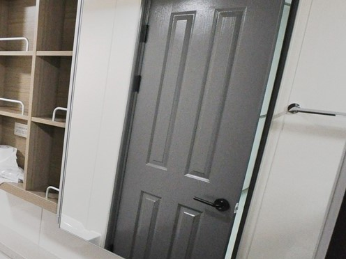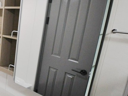 and y/n laughing... ran to bathroom and locked door