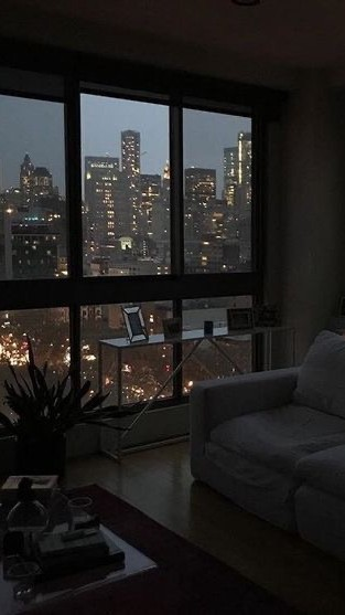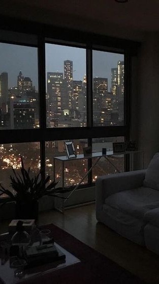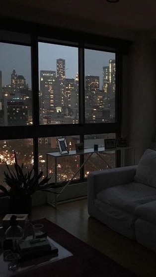 바깥 불빛이 은은하게나마 집안을 밝히는 어두운 집 내부,