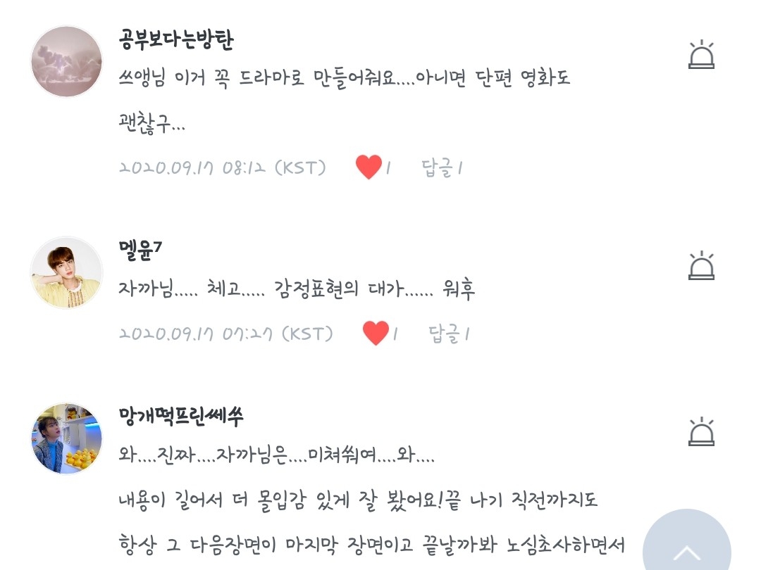 그래서.. 댓글 볼때마다 너무 행복합니다...!