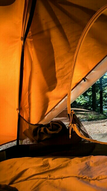 좁은 텐트 안에 남녀