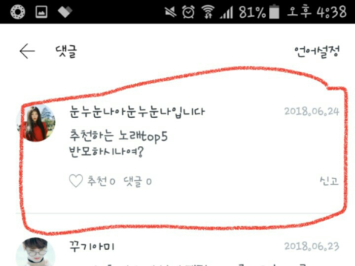 자 그럼 1번째 추천 노래.....