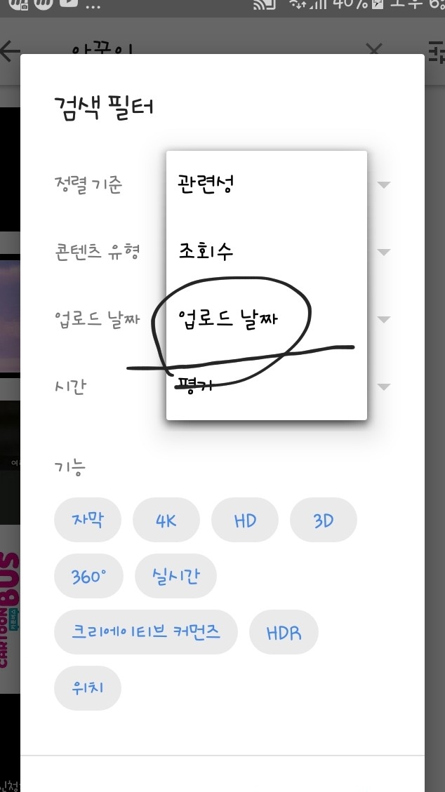 사진처럼 나올꺼예요!그럼 업로드 날짜를 누르신 다음에