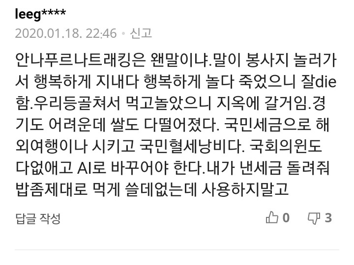 등등 많은 악성 댓글이 있더라고요...