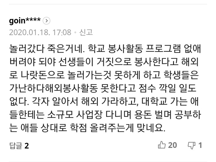 응 니네 가족이라 생각해봐라 썅 난 가족이 아니지만 우리 학교쌤중에서 가장 좋은쌤이였는데... 그리고 명목상 봉사가 아니라 실제로 봉사하시고 학생이 안나오는 주말에 가신거잖아 씹...