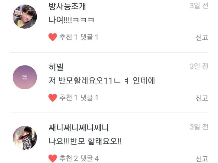 반모하시는분들 쓰겠슴다!!