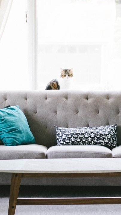 고양이를 쓰다듬다가 손을 떼고 쇼파에 풀썩 앉았다.