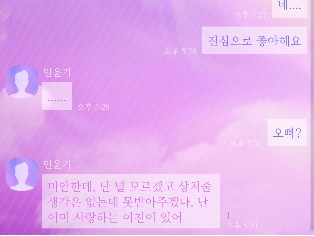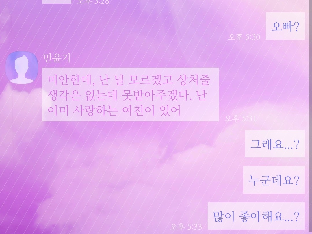 폰 너머 윤기의 한숨소리가 들렸다.