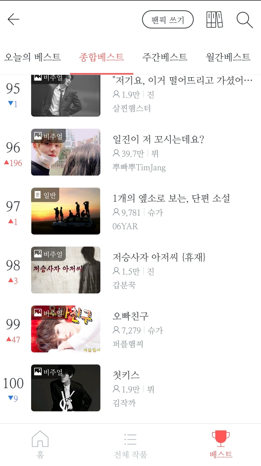 그 후로 둘은 박지민이 고개를 들 동안 그러고 있었다.