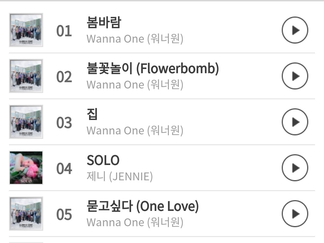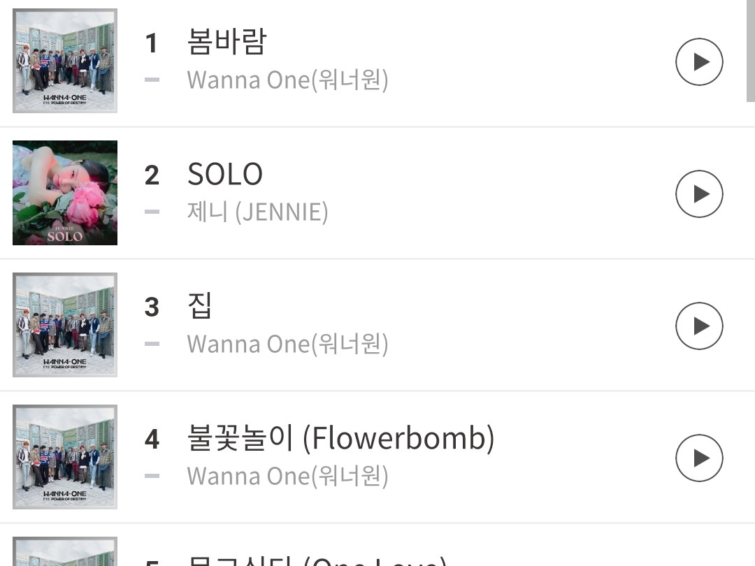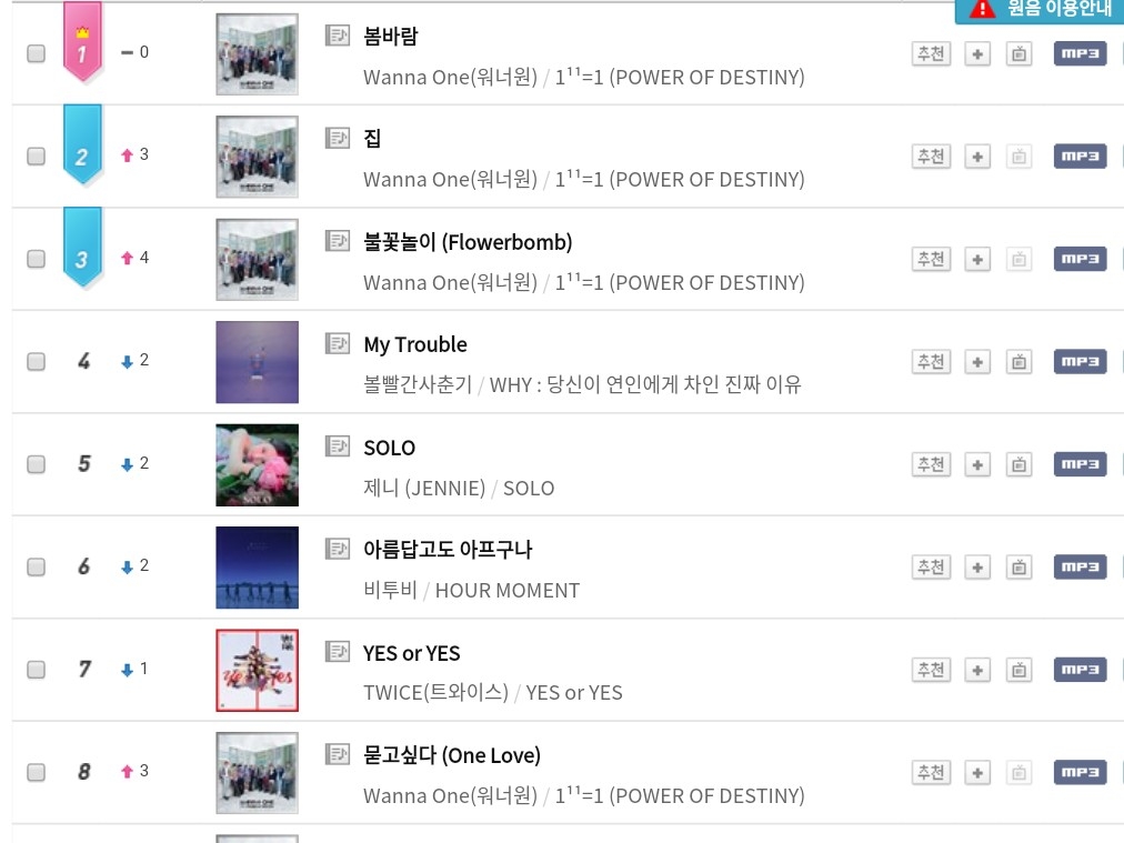 8시 멜론 인기차트에요! 5위부터는 워너원 신곡이 줄서 있는데 짤렸네...